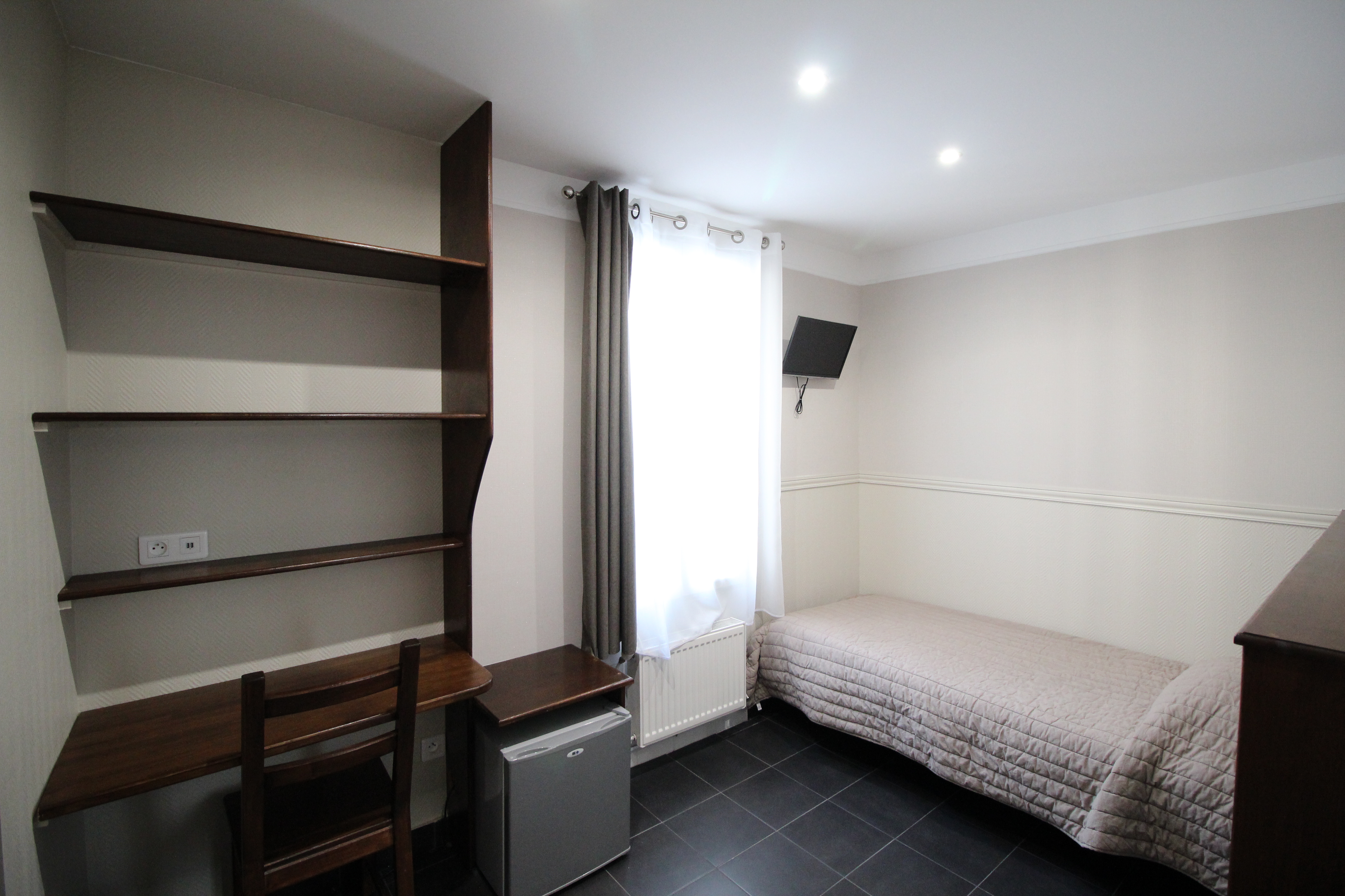 Nos 46 chambres peuvent accueillir de une à trois personnes. Parmi elles, 29 disposent d’une salle de bain privative et d'une télévision, offrant ainsi un confort optimal. Les autres chambres bénéficient d'une salle de bain commune, idéale pour les voyageurs à la recherche d’une solution pratique et abordable. Nous disposons également de deux chambres pouvant accueillir des personnes à mobilité réduite. Simples et fonctionnelles, nos chambres constituent le point de départ parfait pour découvrir la capitale en toute tranquillité.